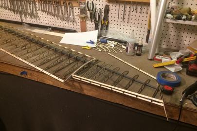 Simple, lightweight, and strong construction starts with a high aspect ratio wing, a triangular cross-sectional rear fuselage, lifting Stabilizer, all covered in Maxeon C-60 monocrystaline commercially available solar cells, and aft raked vertical stab to prevent shadow from being cast on the solar cells. The wing is a constant chord for most of the span, and without dihedral except for the turned -up wingtips. The wingtips have substantial twist, to achieve close to a bell shaped span wise lift distribution, which is the most efficient wing shape for aircraft which are not span constrained. this has the added benefit of reducing adverse yaw, although rudder is still used for yaw control. Heavily inspired by the successful SI2 design, It was started several years ago as a concept, and has continued to evolve. Using 70 Sunpower Maxeon C-60 cells 22.5% efficiency, Dragon can absorb sunlight at low angles. The cells actually improve the shape of the upper surface of the wing, with this design. The price point and commercial availability of these cells are a perfect match for Dragon. Cells are divided in 3 arrays, 2 of 23 cells in series, and one of 24 cells in series. Since the Ideal ratio per solar cell in series is 1 per .55Volts, The 23 cell series arrays have an ideal Maximum Power Point (MPP) of 12.65V, very close to the fully charged state of Dragon's 3S 7P Lithium Ion battery. Each array is connected to the battery using an electronic 30Amp solid state switch.